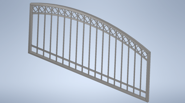 Im oberen Bogenbereich sind diagonal eingeschweißte Rauten aus 12 mm Vierkantstahl angeordnet, die der Bogenlinie folgen.